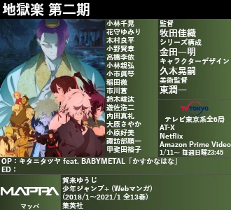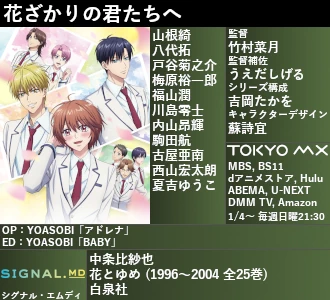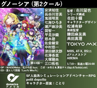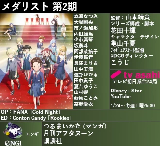 前クールからの継続作品「ニンジャラ (第17クール)」「コウペンちゃん (第4クール)」「DIGIMON BEATBREAK (第2クール)」「SI-VIS: The Sound of Heroes (第2クール)」「青のオーケストラ 第2期 (第2クール)」「ガングリオン (第2クール)」「科学×冒険サバイバル! 第2シリーズ (第2クール)」「不滅のあなたへ Season3 (第2クール)」「グノーシア (第2クール)」「東島丹三郎は仮面ライダーになりたい (第2クール)」「プリンセッション・オーケストラ (第4クール)」を追加しました。