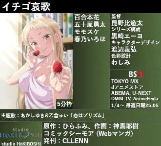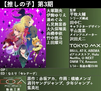 本来は、前クールからの継続作品を載せるんですが、年末年始で忙しいため、一旦、新作分のみの一覧として公開します。