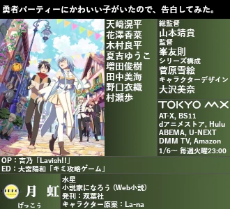 2026 年冬(1 ~ 3 月)放送開始予定のテレビアニメ一覧画像はこの文章の下↓へ置いているのでもう少し下までスクロールしてください。又、更新情報の下に作品単体画像の一覧も置いています。スマホの人はそちらの方が見易いかもしれません。
