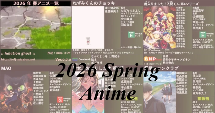 前回記事「2026 年冬アニメ(1 月~ 3 月放送)一覧画像」