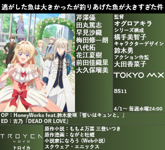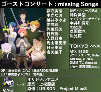 2026 年冬アニメ 作品ごとの画像と原作やコミカライズ作品へのリンクです。