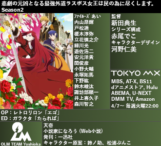 TVアニメ『悲劇の元凶となる最強外道ラスボス女王は民の為に尽くします。Season2』