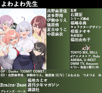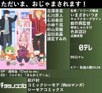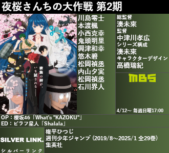 2026 年春(4 ~ 6 月)放送開始予定のテレビアニメ一覧画像はこの文章の下↓へ置いているのでもう少し下までスクロールしてください。又、更新情報の下に作品単体画像の一覧も置いています。スマホの人はそちらの方が見易いかもしれません。