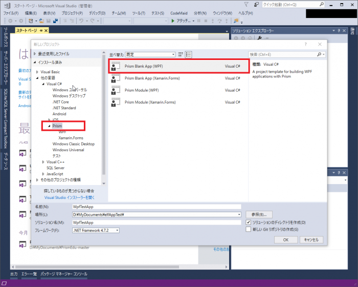 新規 Prism プロジェクトの作成