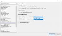又は Visual Studio のメニュー [ツール] – [オプション] – [Nuget パッケージマネージャー] を開いて赤枠で囲んだ項目にチェックした後でビルドするとどうでしょうか?