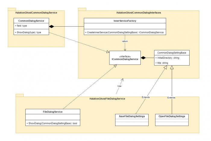 このエントリを書くためにソースコードを見直してると「作っている時はコモンダイアログを表示するのに何個もプロジェクトを作りたくなかったから無理やり fig. 5 の構成にしたけど、構造がかなり歪だな…」とか「面倒がらずに fig. 6(クリックで拡大)のような構成で作った方がちゃんと責務が分割できたな…」等と少し後悔しています。