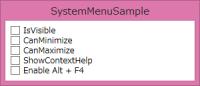 | SystemMenuVisible | タスクバーアイコンの右クリックからシステムメニューを表示する / しないを切り替えるプロパティ。 |