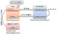 更に『VMからウィンドウを閉じる添付ビヘイビア – SourceChord』で紹介されている VM から Window を閉じる機能も取り込みました。